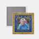 This blue and gold floral photo template memorial magnet is personalised with the name of your loved one, their birth and death year, and the words "Forever in our hearts" at the top.