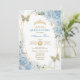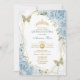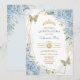 Blue Gold Quinceañera Butterfly Geometric Frame Invitation