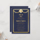 A gold graduation cap and rounded serpentine frame gold tone and blue graduation party invitation design that can be personalized for high school, college, university or vocational school graduations. Composite design by Holiday Hearts Designs (rights reserved).