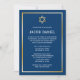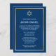 A classic Bar Mitzvah invitation featuring a Star of David design in gold and dark blue. Modern and formal. Designs are flat printed illustrations/graphics - NOT ACTUAL GOLD FOIL.
