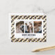 Blue and gold photo Merry Christmas postcard featuring a collage of three photos on a blue and white striped background with stars. Easily personalise this cute holiday postcard with your photos and text.