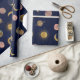 Blue Gold Sun Moon Planets Space illustration Wrapping Paper