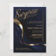 Organise your surprise milestone 90th birthday celebration in style with our chic and sophisticated blue-bordered black and gold party invitation. With its customisable text, you can personalise the invitation. This invitation features a fine gold frame that encloses the text, adding a touch of luxury to your special occasion. The gold and blue abstract wavy ribbon design adds a modern and stylish look to the invitation and creates a sense of flow and movement. The overall design is understated yet beautiful, making it perfect for those who prefer a more refined aesthetic.