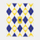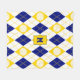 This sporty volleyball team colours fleece blanket features a blue, gold and white argyle plaid pattern with gold "stitching" extending diagonally across the diamond shapes and white volleyballs overlying the gold diamond shapes - customise with athlete's monogram - by katz_d_zynes