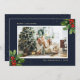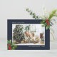Blue Gold Watercolor Holly Photo Christmas Cards