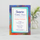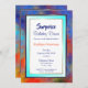 A vibrant modern elegant blue and gold framed blue, gold, red and orange abstract watercolor surprise birthday dinner invitation.