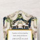 A beautiful all-in-one sophisticated, upmarket outdoor winery watercolor invitation featuring wooden tables with crisp white tablecloths set below soft curtain drapes adorned with glowing lanterns and warm lighting. The tables are set in an al fresco dining style and the interior opulence spills from the inside to the outdoor vineyard. This ai design is inspired by the wine farms of the world, whether it be Portugal, Tuscany, Italy, Cape Town, the Napa Valley or any other wine region. Celebrate your union with this blue, white, ivory, beige, green and gold palette that is ideal for any bridal couple looking for a touch of class and elegance at their wedding. Wow your guests with this unique and original art work that has a tear off strip at the bottom for your guests to r.s.v.p on. This budget friendly invite is ideal for the discerning couple that wants to stand out.