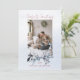 Blue Gold Wreath Couple Family One Photo Christmas Holiday Card