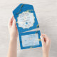 It's finally here. The big plans are going on. Beautiful and gorgeous blue golden Abstract Wonderful All In One Invitation is easy and sweet. Love is fabulous and always fundamentally bright. Great for any couple's anniversary.  Traditionally, invitations go out six to eight weeks before the wedding -- that gives guests plenty of time to clear their schedules and make travel arrangements if they don't live close, but are unreservedly not a hazy languid colossal housemate. If you're welcoming just a few foreign guests, send their invitations along with the ones for your other guests, but make a point to give them a heads-up. Give them a call or send them an email with the particulars, as well as info about reservations for hotel rooms, so they can start to arrange their travel with time to spare. Occasionally stretches don’t make any logic to anyone at all.