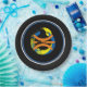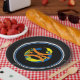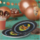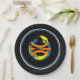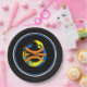 Black rims circle the plate with a Black background and a modern art basketball graphic/logo. Nine inches in size and made of paper. Customise or buy as is.