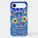 iPhone Case featuring Louis Wain’s animal painting A Cat in Gothic Style (1860-1939). A psychedelic blue cat amicably looks with yellow eyes at the viewer. A wonderful gift for cat lovers and English art.
