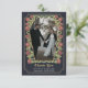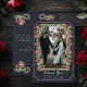 Thank your guests with a touch of gothic romance. This thank you card features a coffin-shaped frame with your photo, surrounded by thorns, roses, and gold accents against a blue background. A hauntingly beautiful keepsake for your special day! Personalise the text, font, and background colour to suit your design preferences. Matching Items in our shop for a complete party theme. Please note that the gold on the invitation is NOT real foil and is printed in flat colours.