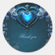 Blue gothic heart surrounded by magical flowers classic round sticker