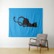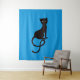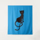 Beautiful cat tapestry with a vector illustration of a gracious evil black cat with glowing eyes over customisable blue background. This evil cat design will appeal to a cat lover who loves black cats and the colour red. It is also great for Halloween.
