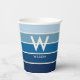 Blue Gradient Striped Monogram Personal Party Paper Cups