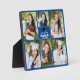 This modern blue senior graduate photo collage plaque features your favorite 6 student photographs in a square shape. This graduation keepsake gift features classy white typography of your high school or college name for the class of 2023. Customize this design with your graduating year below the black grad cap.