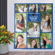 This modern blue senior graduate photo collage tapestry features your favourite 9 student photographs. This beautiful graduation party decor features classy white typography of your high school or college name for the class of 2024. Customise this wall decor with your graduating year below the black grad cap. It features 2 horizontal pictures, 5 vertical photos, and 2 square photographs.
