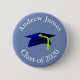 Round button featuring a blue graduation cap - class of 2026 - personalize it with a name now - it comes with curved text in white . You can change the color of the background and the text ...