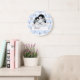 Blue Gray Stripes Penguin Nursery Wall Clock