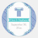 Blue Greek key and column wedding Save the Date Classic Round Sticker
