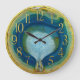 Blue & Green Agate Geode with Crystals Gold Detail Large Clock