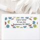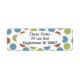 These return address labels have a geometric design of blue, green, and brown dots.
