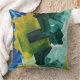 Blue, Green, and Yellow Abstract Brushstrokes Cushion