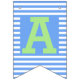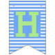 Blue, Green Birthday Bunting Flags perfect for him, a pastel blue and green with stripes party theme.