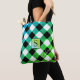 Blue Green & Black Buffalo Check Plaid Monogram Tote Bag