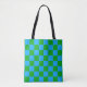 Blue Green Chequered Check Pattern Tote Bag