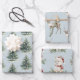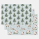 Blue Green Christmas Trees Deer Fox Wrapping Paper Sheet