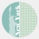 Blue-Green & Cream Floral; New York Classic Round Sticker