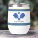 A super fun wine or coffee tumbler featuring crossed pickleball paddles and colourful blue and green stripes. Add you custom text to personalise. Easily change the colours. Makes a perfect pickleball gift for your friend, tournament partner, coach or anyone who loves this awesome game of pickleball.
