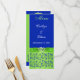This elegant and affordable royal blue and lime green floral menu card has a chartreuse PRINTED ribbon and bow with a pair of PRINTED diamond jewel and FAUX glitter (simulated) joined hearts on it that matches the wedding invitations shown below. It is designed on a rack card with a glossy front, and matte finish on the back. If you would like a menu card on invitation paper to match your invitations, or if you have any requests for additional items or changes, please email niteowlstudio@gmail.com with your request.