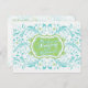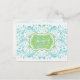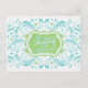 The text on the back of this elegant, yet bright and cheerful, turquoise or aqua blue (robin's egg blue), lime (chartreuse) green and white abstract floral memory card for the bride to be is fully customisable. You can change it using the personalise option. For more extensive changes to the bridal shower memory card, including changing the font, font colour, or font layout, choose the customise option. This pretty favourite memory of the bride-to-be card can be enclosed in the matching bridal shower invitation so that wedding shower guests can fill out the back with their favourite memory and bring the card with them to the shower as a wedding keepsake for the bride to be. The matching invitation is shown below. NOTE: This is a flat printed design without any 3D or raised embellishments.