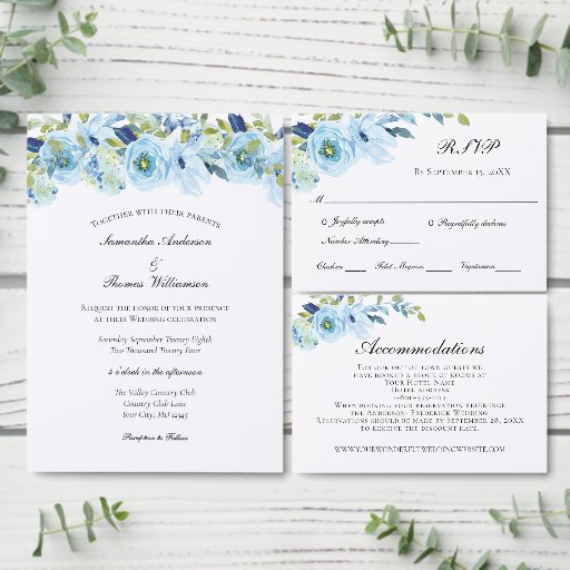 Blue Green Floral Wedding Invitation CollectionDesigned by Cecilia Frederick