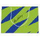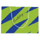 Birthday Gift Bag with blue diamonds with lime. Personalise for someone special for any occasion