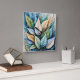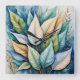 Blue Green gold latte Leaves Square Wall Clock