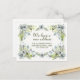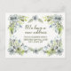 Moving announcement postcard with pretty blue and green watercolor, hand-drawn flowers. Text says, "We have a new address." Personalise by adding your name/family name and your new address. Contact me for assistance with customisation or to request additional matching or coordinating products.