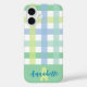 Blue Green Lime Pastel Gingham Pattern Monogram Case-Mate iPhone Case