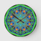 Blue Green Mandala Round Clock