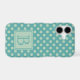 Classic cute blue green polka dot pattern with elegant monogram.