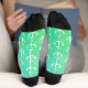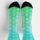 Socks with a nautical pattern of white anchors on a blue and green background. Simply add these socks to your cart, get them home, and then enjoy them wherever your feet may go.