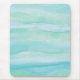 A pretty abstract watercolor mouse pad with brushstrokes in shades of aqua blue and light green. A stylish and modern office accessory.