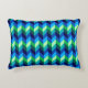 An accent pillow featuring a colourful, ombre pattern design of chevrons in lime green, royal turquoise, ocean blue and sky blue.
