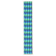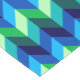 A 16” x 108” table runner featuring a colourful, ombre pattern design of chevrons in lime green, royal turquoise, ocean blue and sky blue.