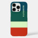 A trendy blue green and orange stripes pattern adds a bold and modern touch to your personalised iPhone 16 Pro case. Customise it with a name, monogram, or initials for a unique and stylish look.