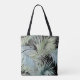 Bring a touch of tropical elegance to you with this stunning design featuring a serene blend of blue and shades of green palm leaves. The lush overlapping leaves create a tranquil pattern, capturing the breezy essence of nature. The soft gradient hues evoke a refreshing and relaxed feel that is perfect for those who love the soothing beauty of palm leaves. This nature-inspired bag offers both artistic flair and a calming aesthetic, perfect for doing your grocery shopping in style or for pairing with a sundress to the beach.