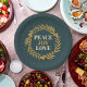 Blue-Green Peace, Joy, Love Gold Christmas Wreath Paper Plate