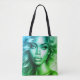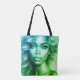Blue + Green Photo of a Woman on Reusable Grocery Tote Bag